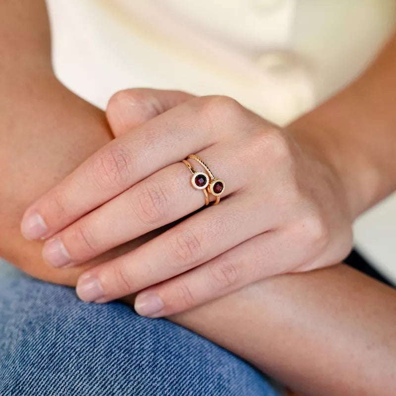 Anillo Oro 18 Quilates Trenzado Circum Granate
