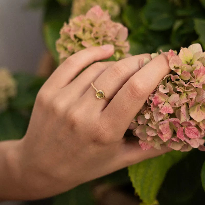 Anillo de oro amarillo de 18 kilates con peridoto de 6 mm