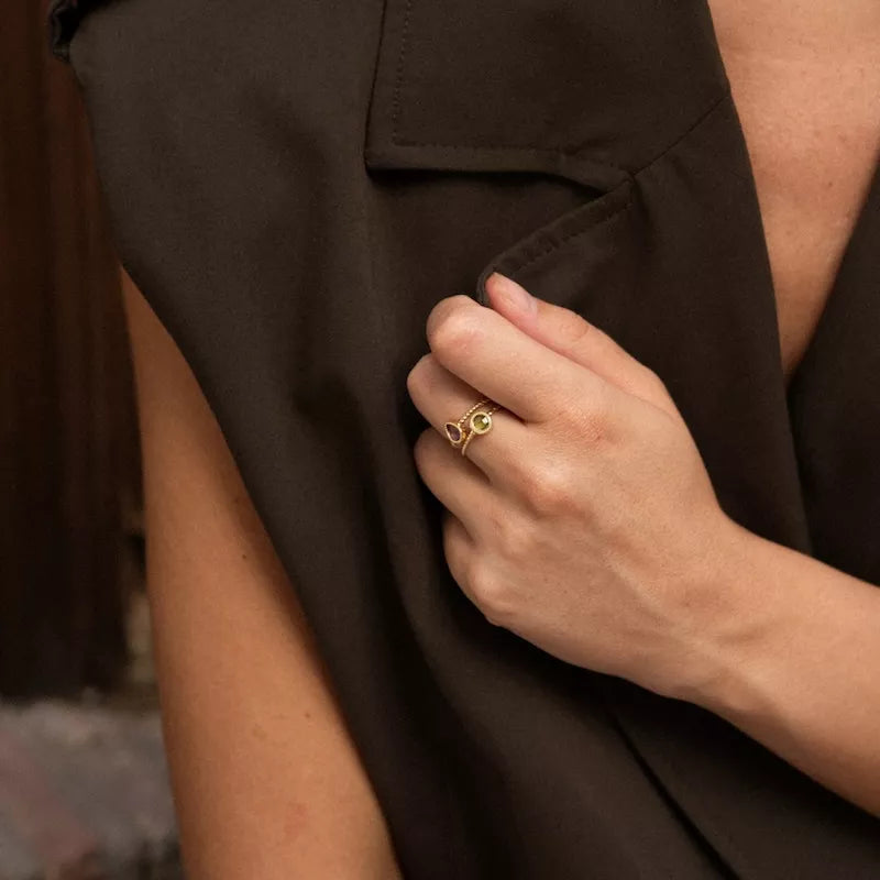 Anillo Oro 18 Quilates Gemini Topacio y Peridoto