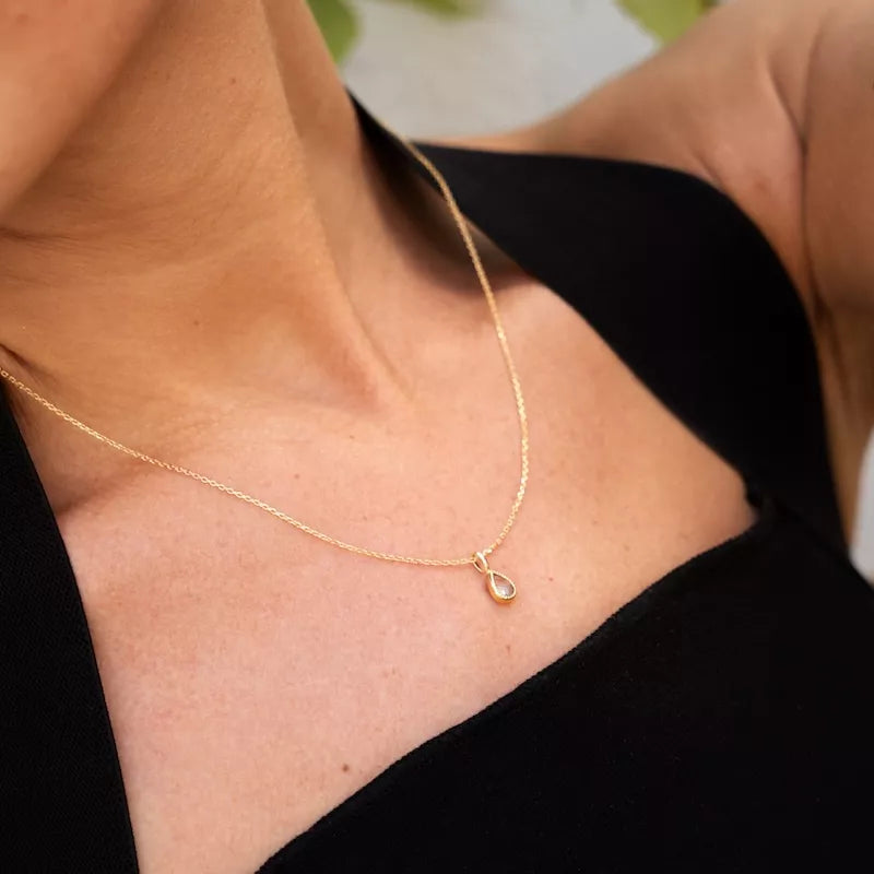 Colgante de oro amarillo con topacio fino de 7 x 5 mm.